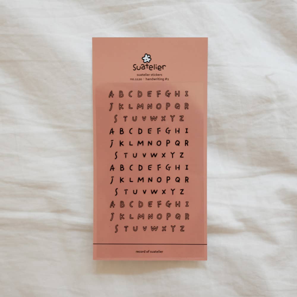 It is a handwritten alphabet sticker. It looks like a little ink is placed on top of a thin, transparent material. Feels like you wrote it yourself.