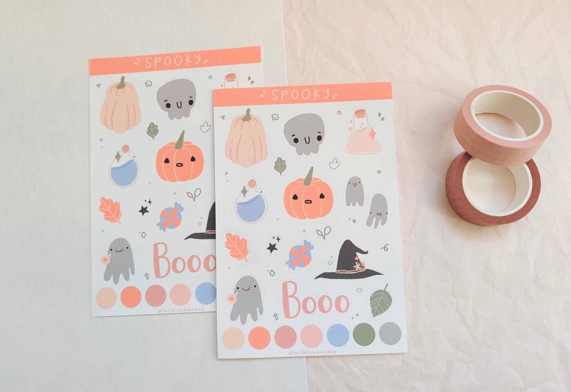 - 16 Halloween-themed illustration stickers + 7 round stickers